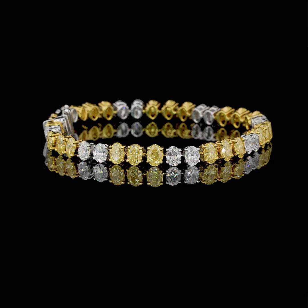 The warmth of golden light meets the purity of moonlit brilliance in a seamless embrace. Each oval diamond, yellow and white, reflects the eternal balance between day and night.