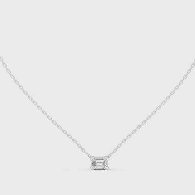 A quiet glow with bold geometry, this minimalist pendant features a 0.50-carat emerald-cut diamond of GH color and VS clarity, elegantly suspended on a fine chain. Crafted in 4g of white gold, it’s a refined statement of clarity and elegance, designed for everyday wear with enduring brilliance.