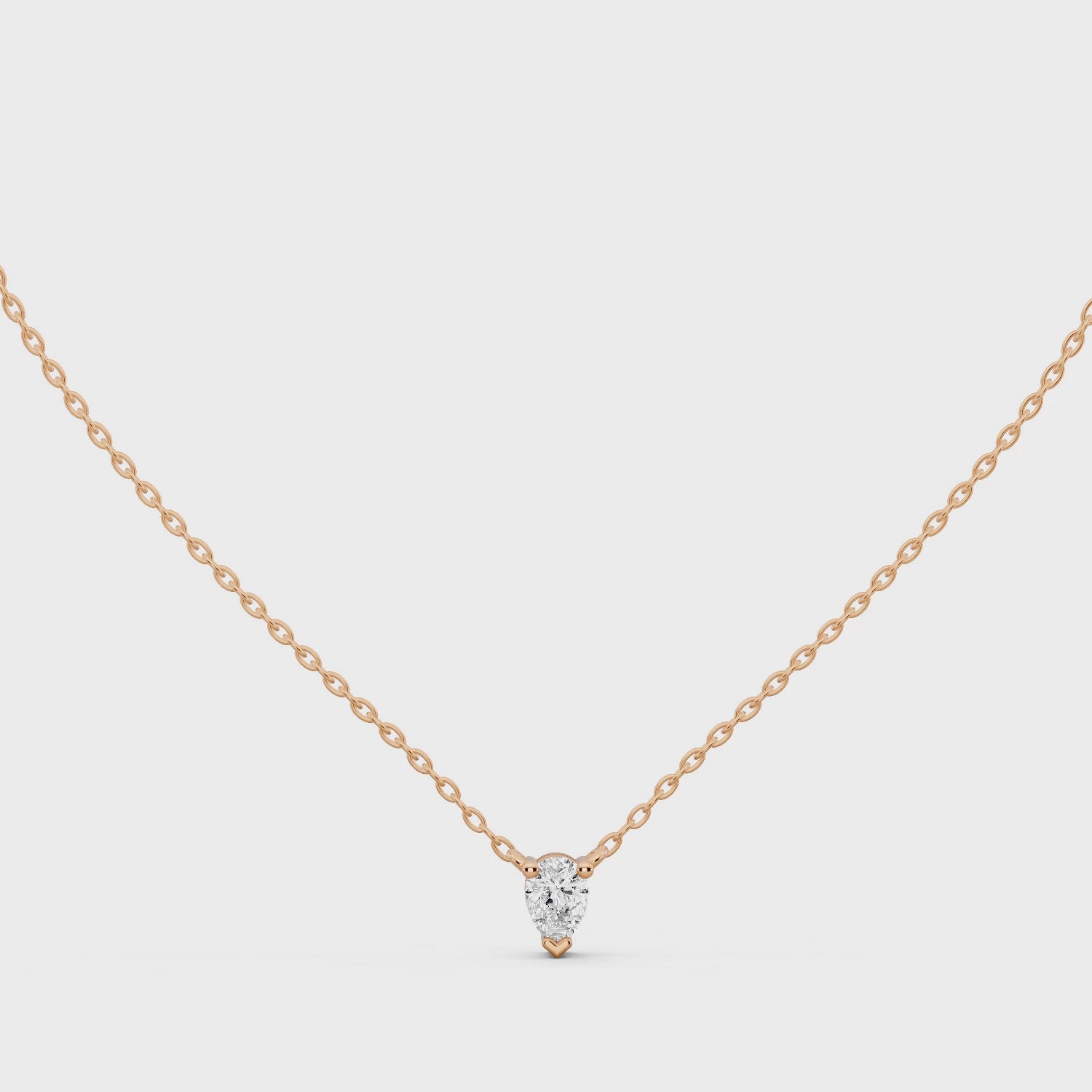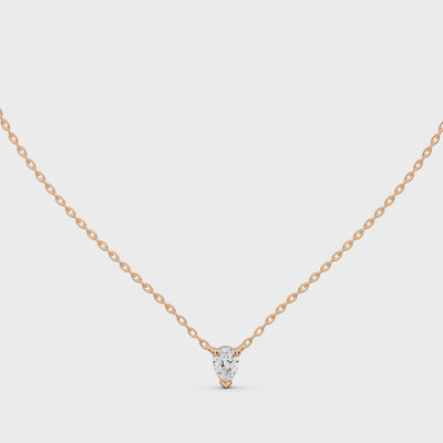 Soft and luminous, this elegant necklace features a 0.50-carat pear-shaped diamond of GH color and VS clarity, resting like a single drop of light on the skin. Crafted in 4g of rose gold, it combines emotional warmth with refined brilliance, a delicate expression of love and grace.