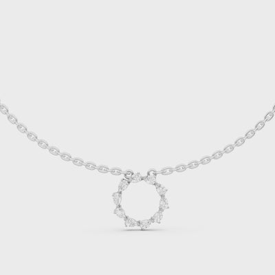 A poetic loop of elegance, this pendant features 0.95 carats of pear-shaped GH color, VS clarity diamonds forming a radiant full-circle silhouette. Crafted in 5.23g of white gold, it reflects light and meaning in perfect symmetry, a modern heirloom for today and always.