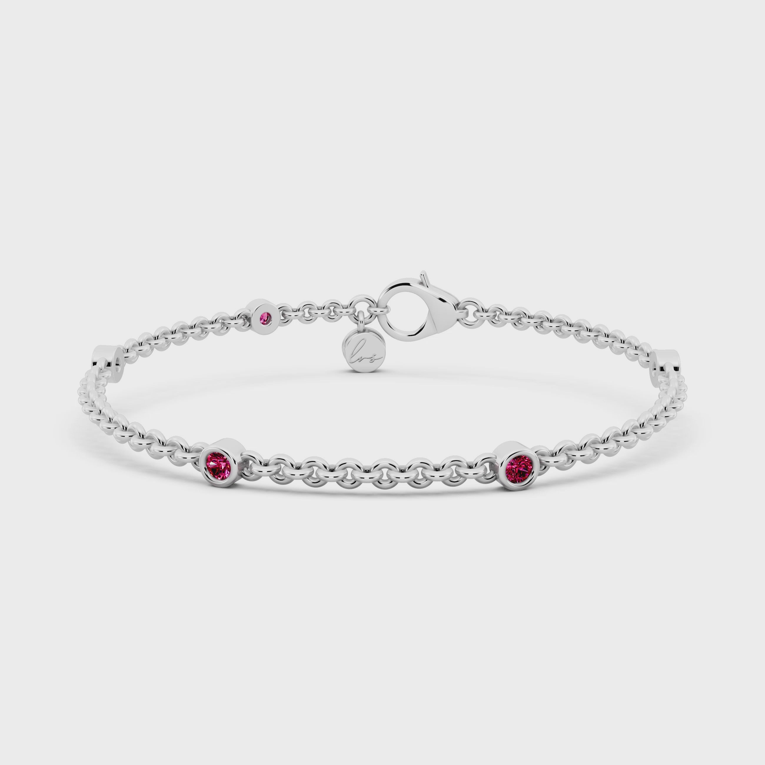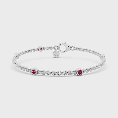 Delicately crafted in 3 grams of white gold, this bracelet features 0.20 carats of round-cut rubies — radiant and refined. A symbol of quiet strength and passion, each ruby whispers elegance with every movement.