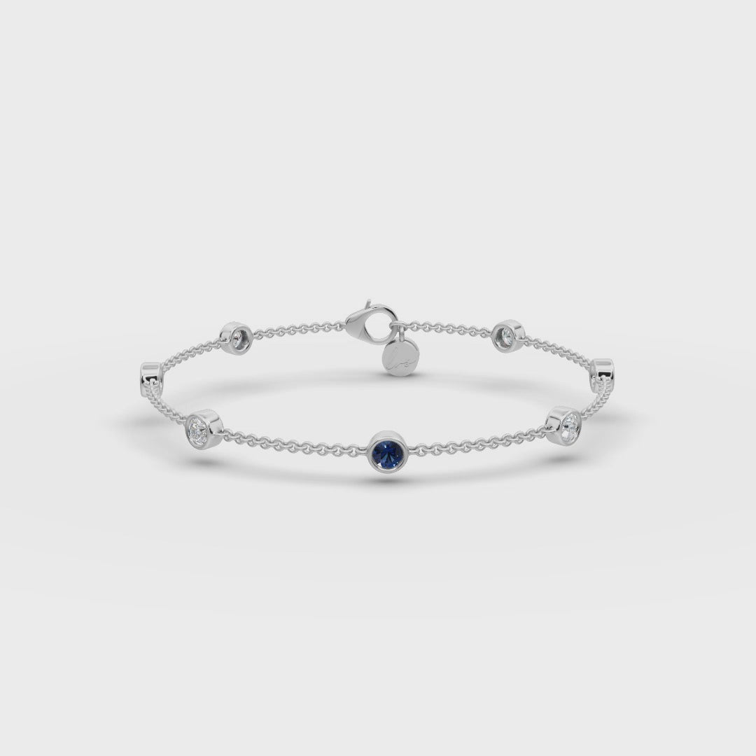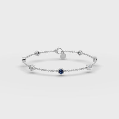 The Aurelia Bracelet shines with golden warmth, highlighting a 0.67 carat round sapphire framed by 0.56 carats of round diamonds in GH color and VS clarity. Designed in 3.7g of 18k white gold, it brings effortless sophistication.