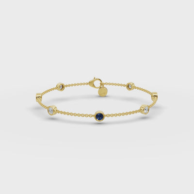 The Aurelia Bracelet shines with golden warmth, highlighting a 0.67 carat round sapphire framed by 0.56 carats of round diamonds in GH color and VS clarity. Designed in 3.7g of 18k yellow gold, it brings effortless sophistication.