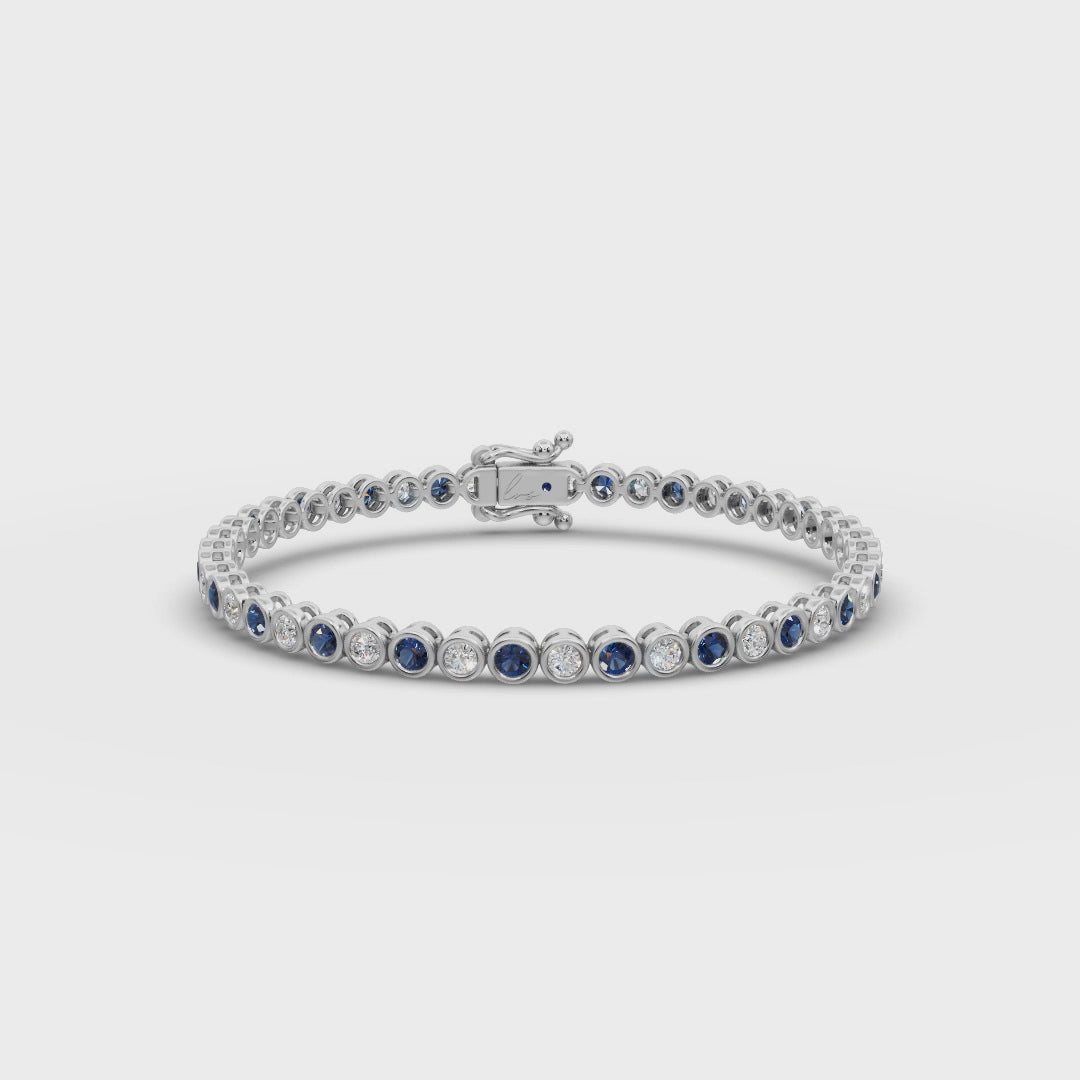 The Aurevia Bracelet glows with timeless elegance, where 2 carats of deep blue sapphires meet 1.8 carats of round GH color, VS clarity diamonds. Set in 10.5g of 18k white gold, it captures a perfect harmony of radiance and depth.