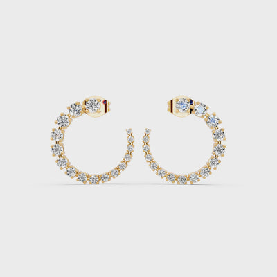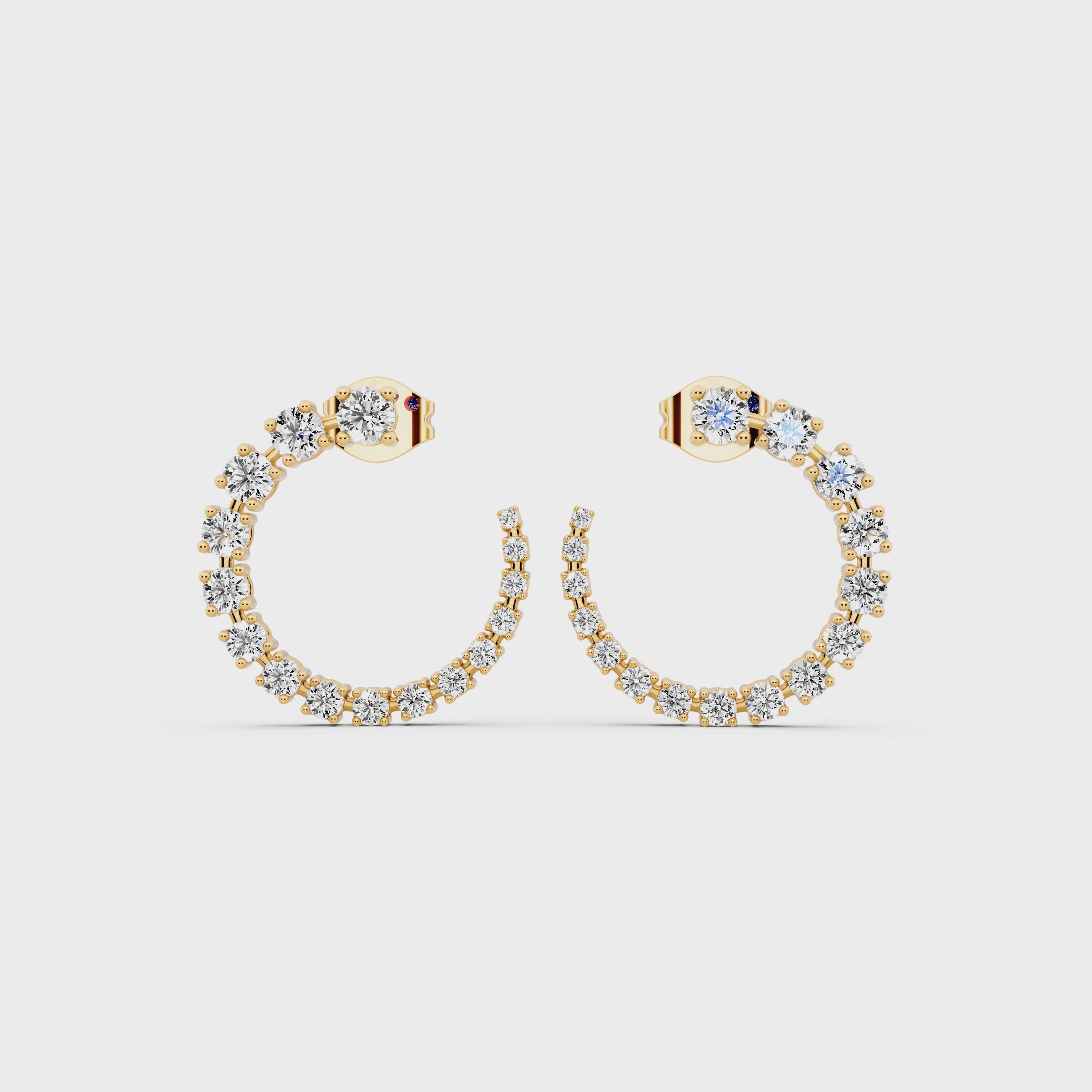 A graceful arc of brilliance, these crescent-shaped earrings capture light from every angle. Crafted in 3.844g of yellow gold and adorned with 1.32 carats of round GH color, VS clarity diamonds, they embody bold glamour and timeless elegance.