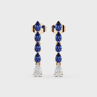 The Seraphis Earrings cascade with brilliance, where 2 carats of pear-shaped sapphires flow into 0.60 carats of pear-shaped diamonds, GH color and VS clarity. Crafted in 1.95g of 18k rose gold, these earrings embody elegance with a touch of celestial grace.