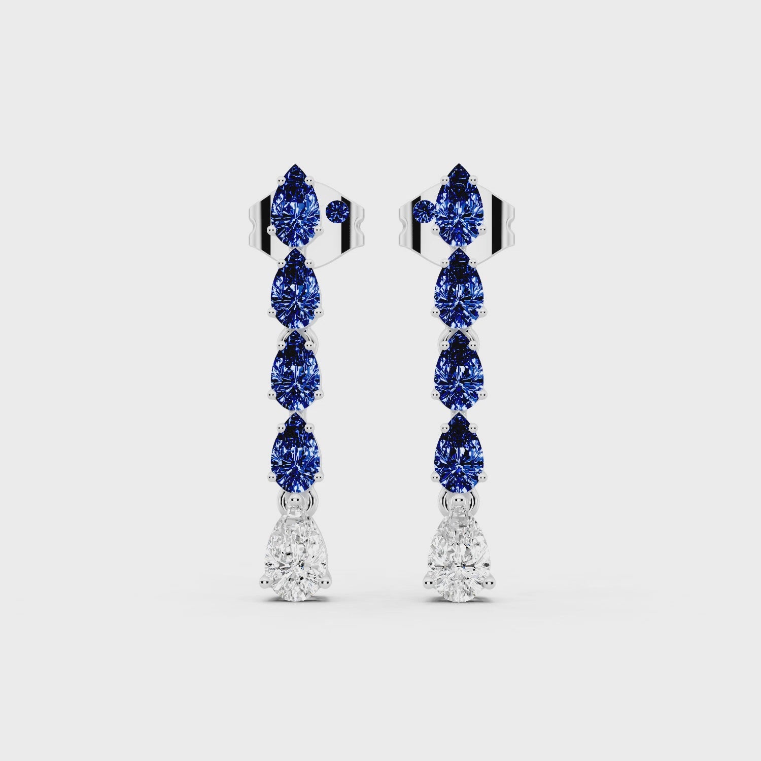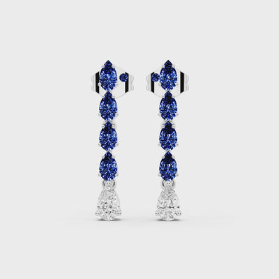The Seraphis Earrings cascade with brilliance, where 2 carats of pear-shaped sapphires flow into 0.60 carats of pear-shaped diamonds, GH color and VS clarity. Crafted in 1.95g of 18k white gold, these earrings embody elegance with a touch of celestial grace.