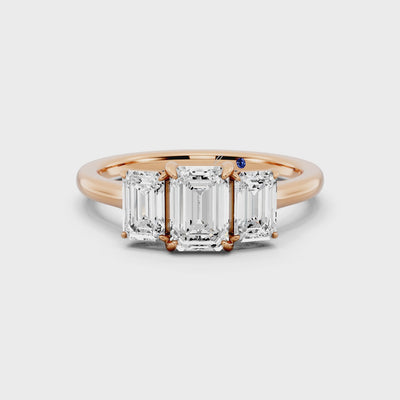 The Triviera Ring embodies timeless elegance in its truest form. Three emerald-cut diamonds (totaling 1.00 carat, GH color, VS clarity) radiate with precision and symmetry, each facet reflecting endless light. Set upon 2.7 grams of 18k rose gold, the design celebrates balance, strength, and the beauty of togetherness.