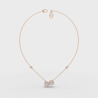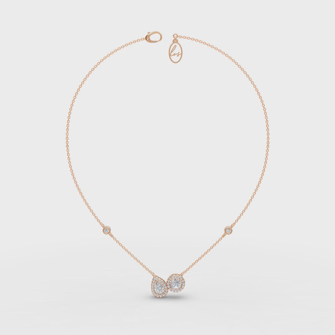 A symbol of harmony, the Lumira Pendant unites pear and round-cut diamonds in a graceful duet, each haloed by delicate pavé. With a total of 1.40 carats (GH color, VS clarity), the diamonds radiate brilliance against 4.3 grams of 18k gold. A design that captures both elegance and balance, perfect for moments of light and love.