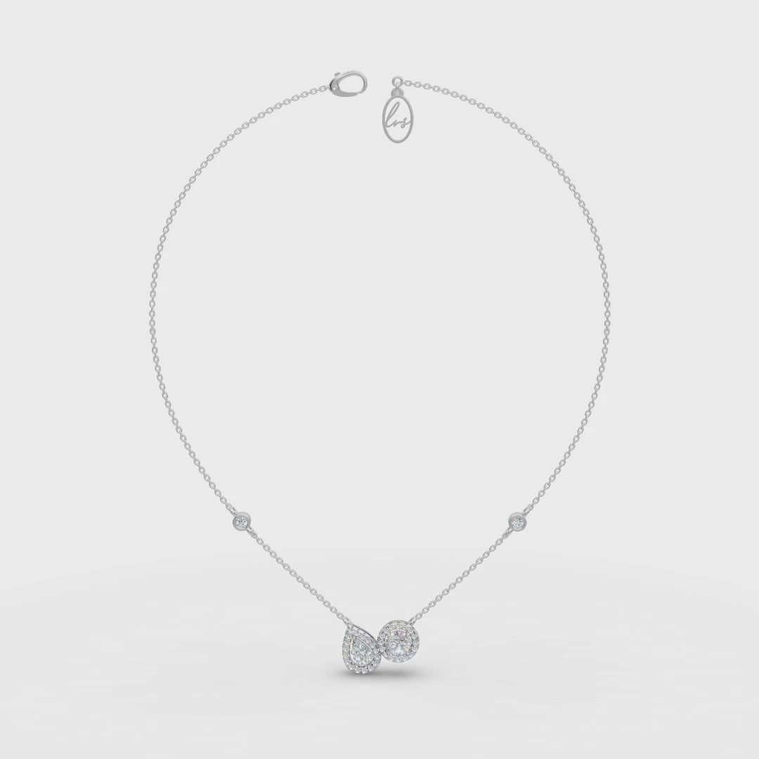 A symbol of harmony, the Lumira Pendant unites pear and round-cut diamonds in a graceful duet, each haloed by delicate pavé. With a total of 1.40 carats (GH color, VS clarity), the diamonds radiate brilliance against 4.3 grams of 18k gold. A design that captures both elegance and balance, perfect for moments of light and love.