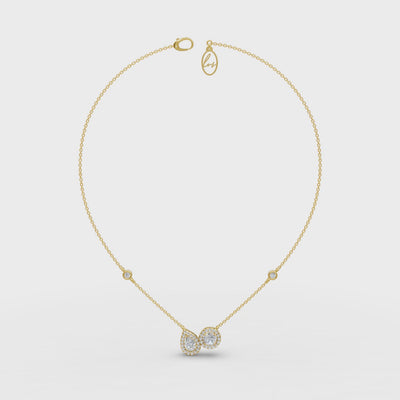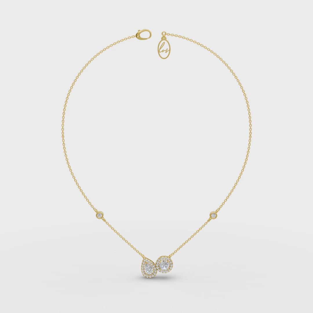 A symbol of harmony, the Lumira Pendant unites pear and round-cut diamonds in a graceful duet, each haloed by delicate pavé. With a total of 1.40 carats (GH color, VS clarity), the diamonds radiate brilliance against 4.3 grams of 18k gold. A design that captures both elegance and balance, perfect for moments of light and love.