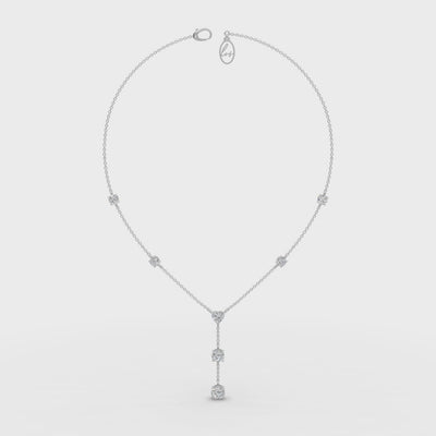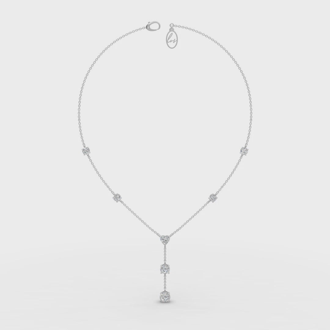 The Coralia Necklace embodies elegance through a cascade of diamonds, where a delicate heart-cut meets luminous rounds in perfect harmony. With a total of 2.3 carats (GH color, VS clarity), each stone reflects light with timeless brilliance, suspended gracefully from 4 grams of 18k gold. A piece designed to capture love and refinement in every detail.