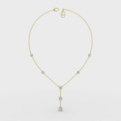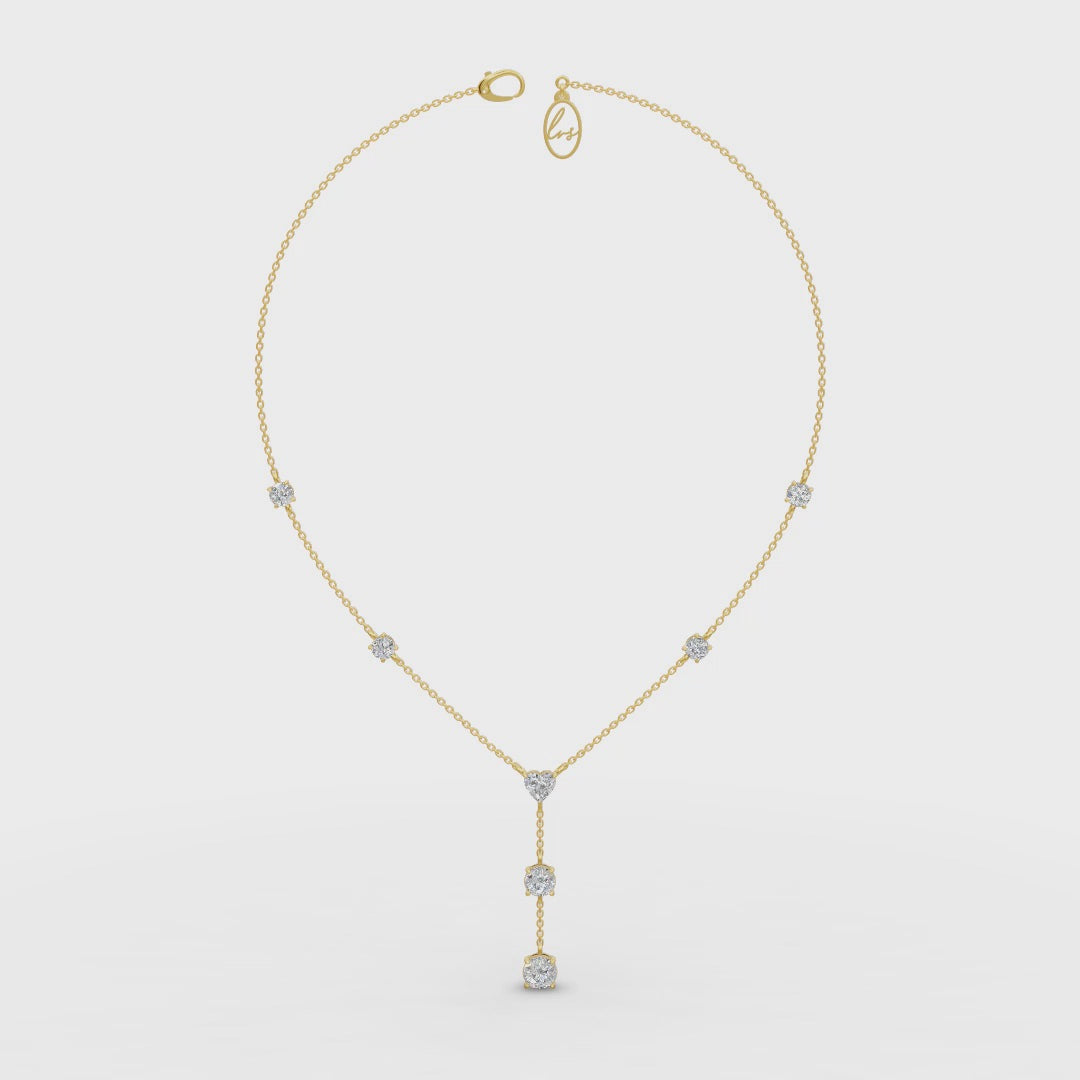 The Coralia Necklace embodies elegance through a cascade of diamonds, where a delicate heart-cut meets luminous rounds in perfect harmony. With a total of 2.3 carats (GH color, VS clarity), each stone reflects light with timeless brilliance, suspended gracefully from 4 grams of 18k gold. A piece designed to capture love and refinement in every detail.