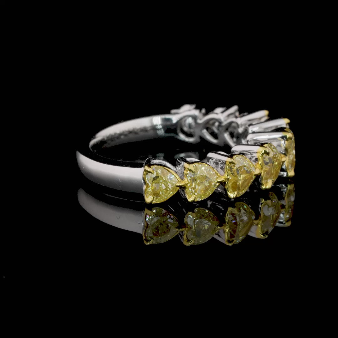 A composition of rare fancy yellow heart-shaped diamonds, radiating brilliance and harmony with every facet. This creation embodies timeless elegance and the rarity of true devotion. Contact us directly for further inquiries.