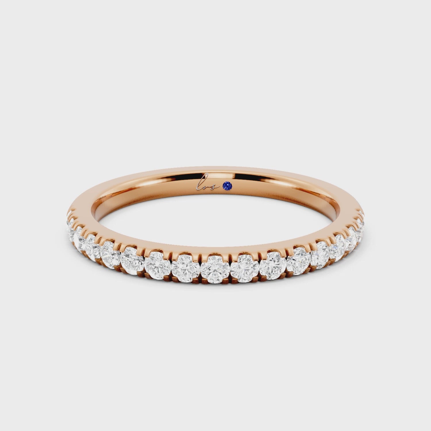 A refined symbol of elegance, the Eternal Radiance Diamond Band is crafted in 2.3g of rose gold, featuring 0.30 carats of perfectly set round diamonds in GH color and VS clarity. This timeless design offers a graceful sparkle, making it ideal as a wedding band, stacking piece, or a statement of everyday luxury.