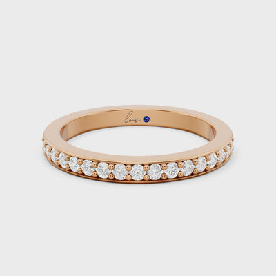 The Celeste Diamond Eternity Band radiates timeless elegance, crafted in 2.6g of rose gold and adorned with 0.57 carats of round-cut diamonds in GH color and VS clarity. Its full-circle brilliance symbolizes eternal love and makes it perfect for weddings, anniversaries, or luxurious stacking.