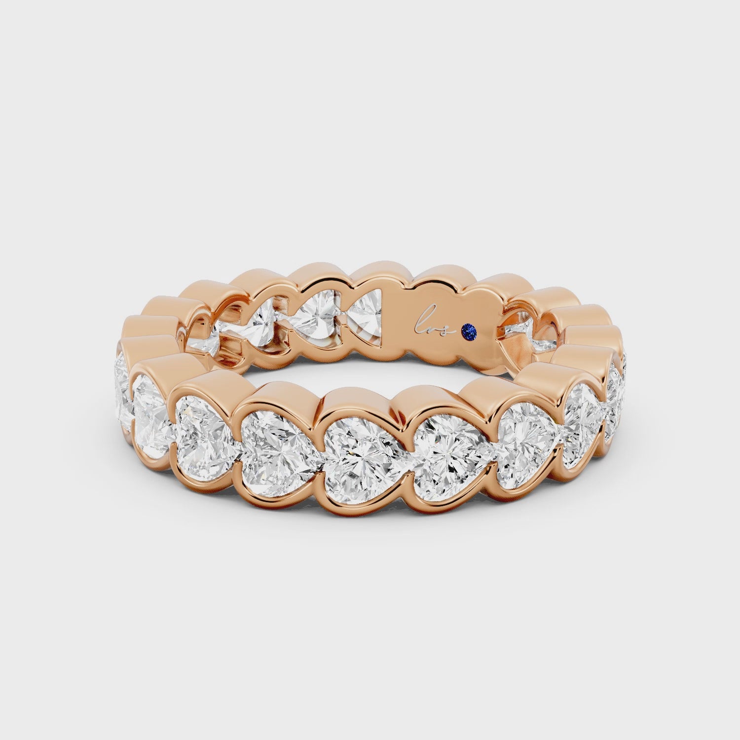 The Amour Éternel Diamond Band is a bold declaration of love, crafted in 4g of rose gold and adorned with 3.00 carats of heart-shaped diamonds in GH color and VS clarity. Each diamond flows seamlessly into the next, symbolizing an unbreakable bond and everlasting passion.