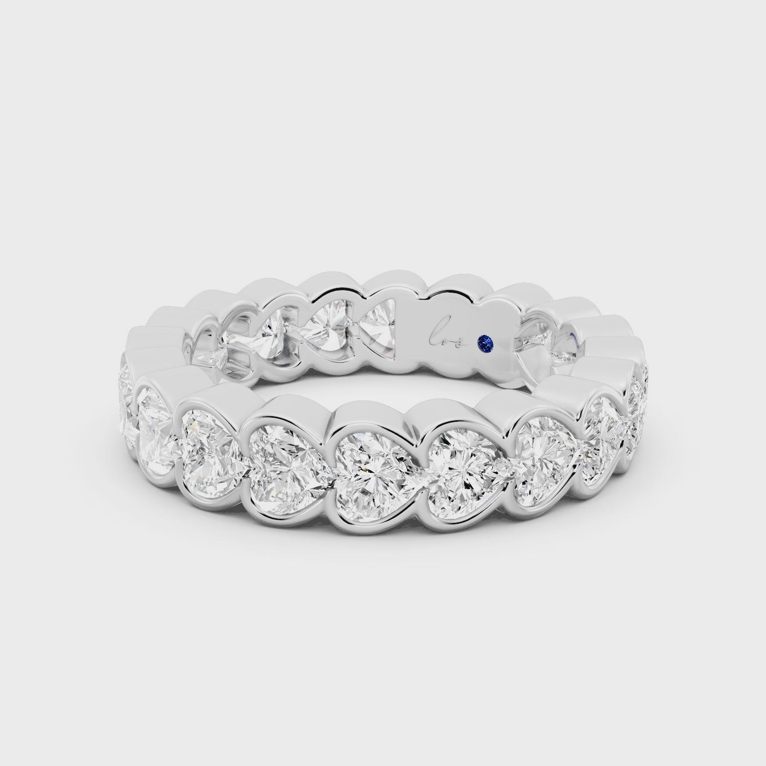 Radiant and refined, the Amour Éternel Diamond Band is meticulously crafted in 4g of white gold, featuring 3.00 carats of heart-shaped diamonds in GH color and VS clarity. Its icy brilliance and graceful design make it a timeless treasure for any occasion.