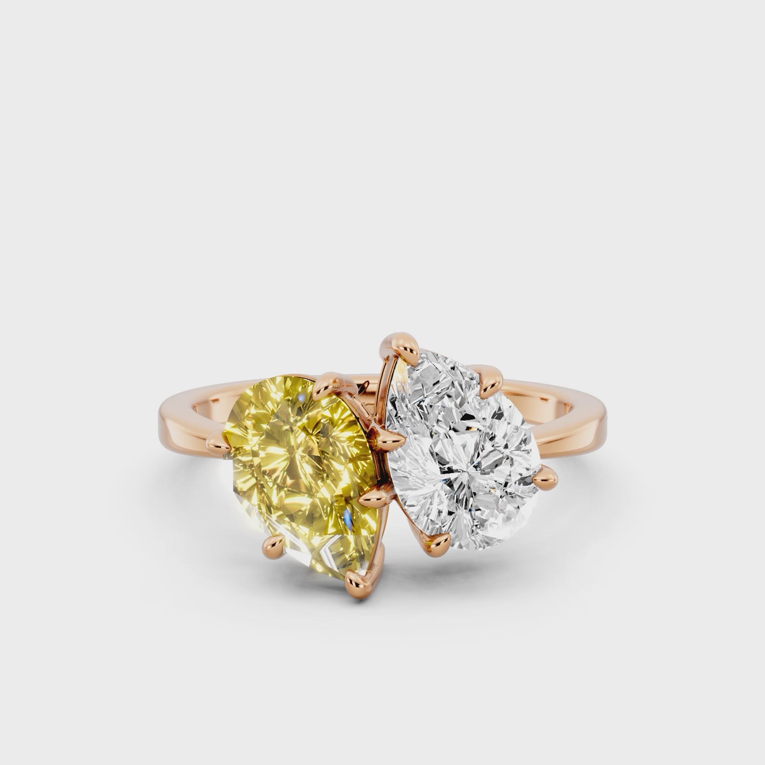 Crafted in 3g of radiant rose gold, the Luminous Bond Ring unites two pear-shaped treasures in a harmonious embrace — a 1.50ct GH color, VS clarity diamond and a 1.50ct vivid yellow sapphire. This symbolic pairing celebrates the fusion of strength and warmth, capturing the essence of two souls shining together.