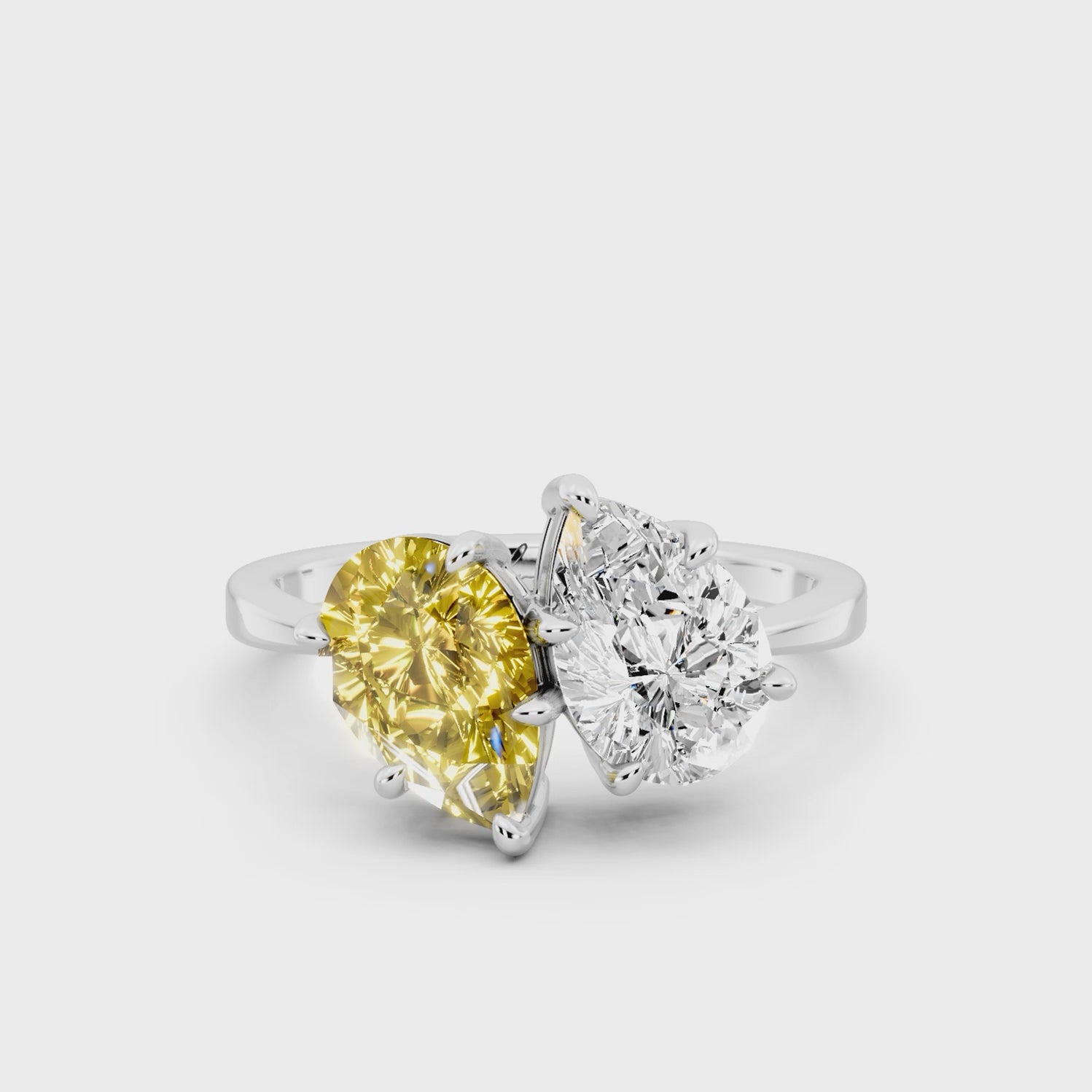 Crafted in 3.00g of radiant rose gold, the Luminous Bond Ring unites two pear-shaped treasures in a harmonious embrace — a 1.50ct GH color, VS clarity diamond and a 1.50ct vivid yellow sapphire. This symbolic pairing celebrates the fusion of strength and warmth, capturing the essence of two souls shining together.