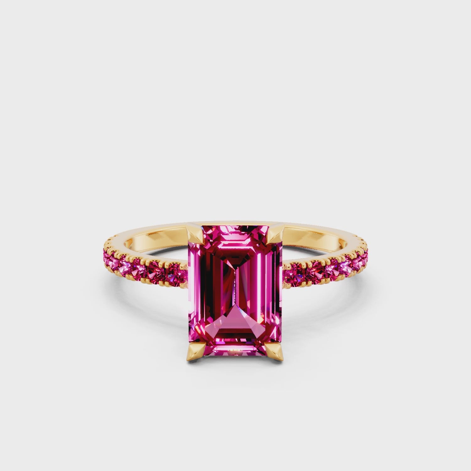 Handcrafted in 1.9g of yellow gold, the Vermilion Glow Ring bursts with the richness of 2.3 carats of rubies, led by an emerald-cut centerpiece and framed with round rubies along the band. The golden setting enhances the gemstones’ passionate glow, creating a design full of regal charm.
