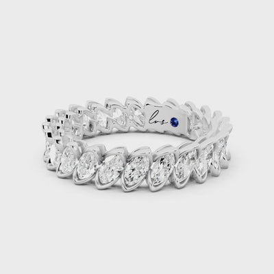 The Veyra Band embodies endless elegance, with 2.4 carats of marquise-cut diamonds (GH color, VS clarity) set seamlessly around the finger. Crafted in 2.2 grams of 18k white gold, this luminous design creates a continuous flow of brilliance and sophistication.