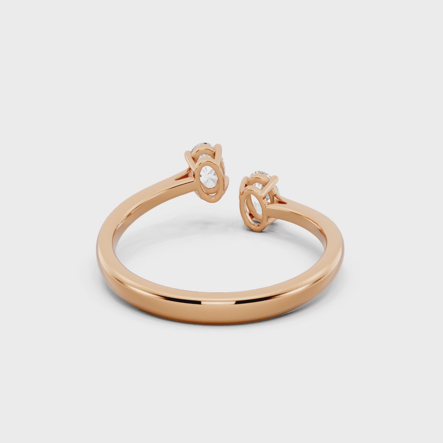 The Olivienne Ring captures the beauty of duality with two oval-cut diamonds (0.60 carats total, GH color, VS clarity) set in perfect balance. Designed in 2.11 grams of 18k rose gold, this open band radiates modern grace while symbolizing harmony and connection.
