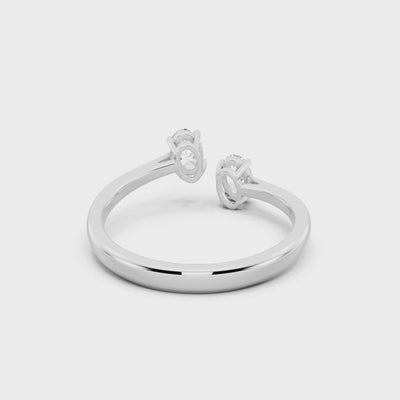 The Olivienne Ring captures the beauty of duality with two oval-cut diamonds (0.60 carats total, GH color, VS clarity) set in perfect balance. Designed in 2.11 grams of 18k white gold, this open band radiates modern grace while symbolizing harmony and connection.