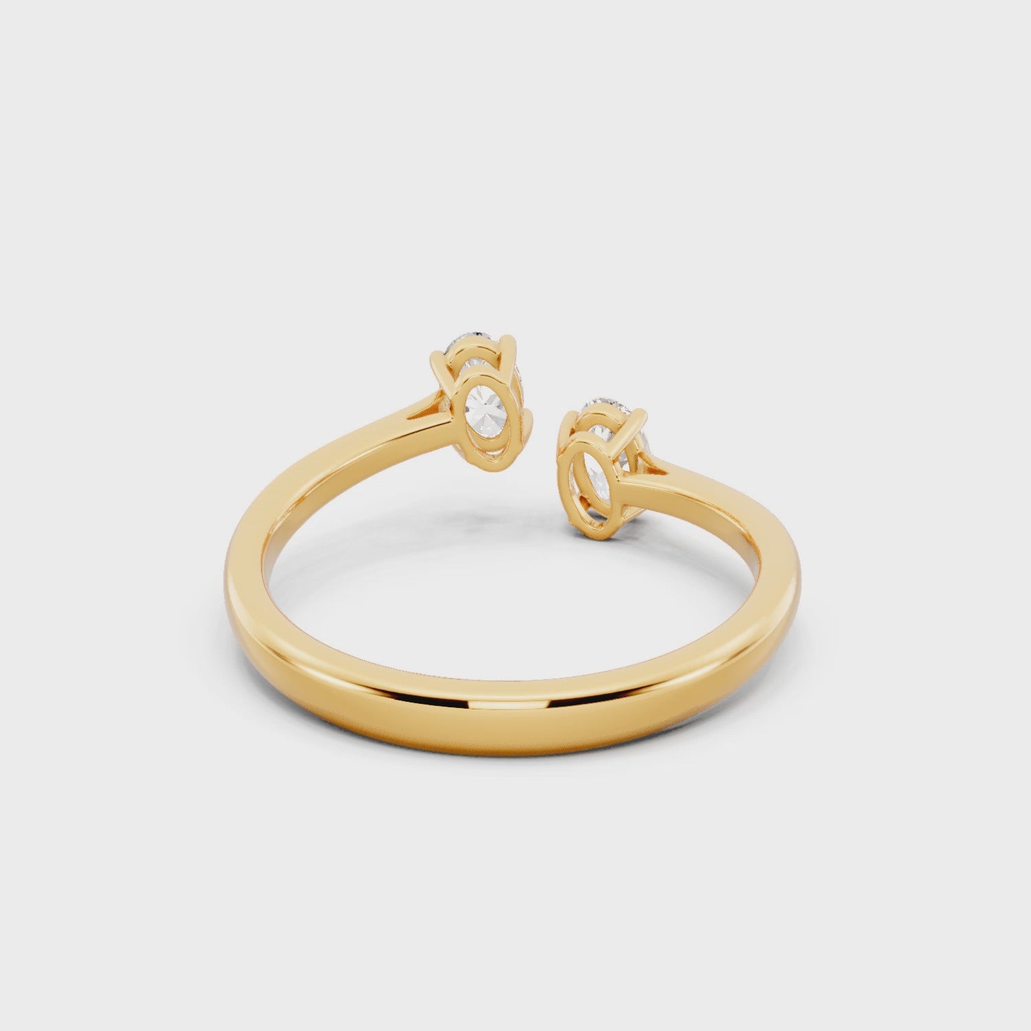 The Olivienne Ring captures the beauty of duality with two oval-cut diamonds (0.60 carats total, GH color, VS clarity) set in perfect balance. Designed in 2.11 grams of 18k yellow gold, this open band radiates modern grace while symbolizing harmony and connection.