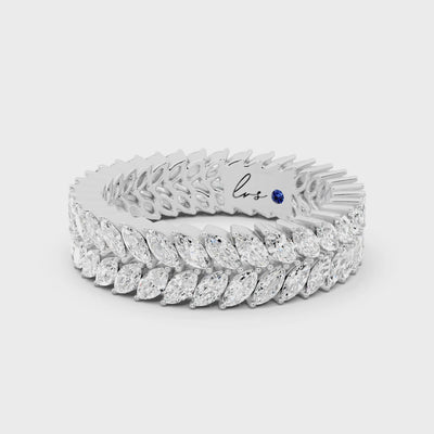 The Lunaria Band captures light with striking brilliance, featuring 4.76 carats of marquise-cut diamonds (GH color, VS clarity) set in perfect symmetry. Crafted in 5.5 grams of 18k white gold, its double-row design evokes timeless luxury and modern sophistication.
