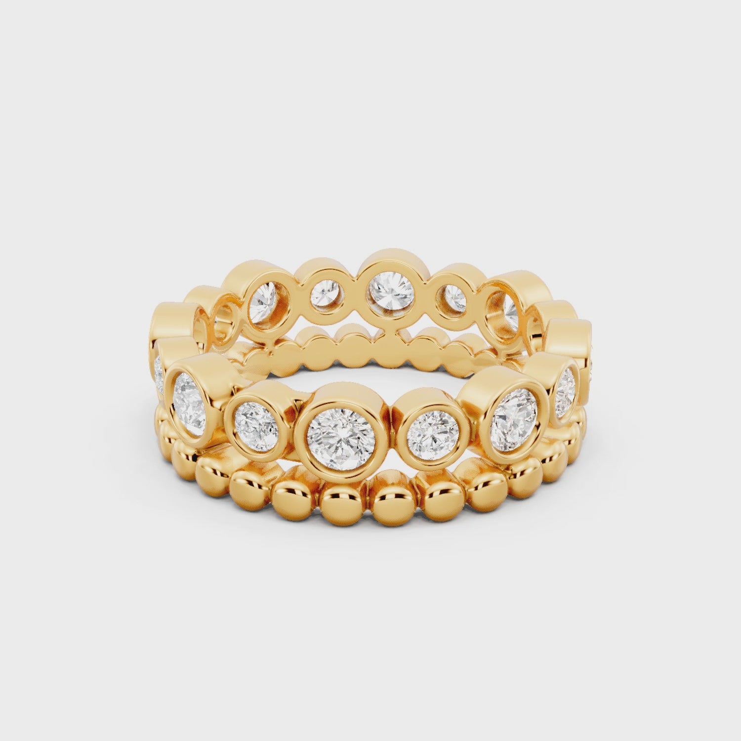 The Celestara Ring shines with harmony and elegance, featuring 1.30 carats of round-cut diamonds (GH color, VS clarity) set in a graceful double-band design. Crafted in 5.3 grams of 18k yellow gold, it radiates timeless sophistication, blending bold brilliance with refined style.