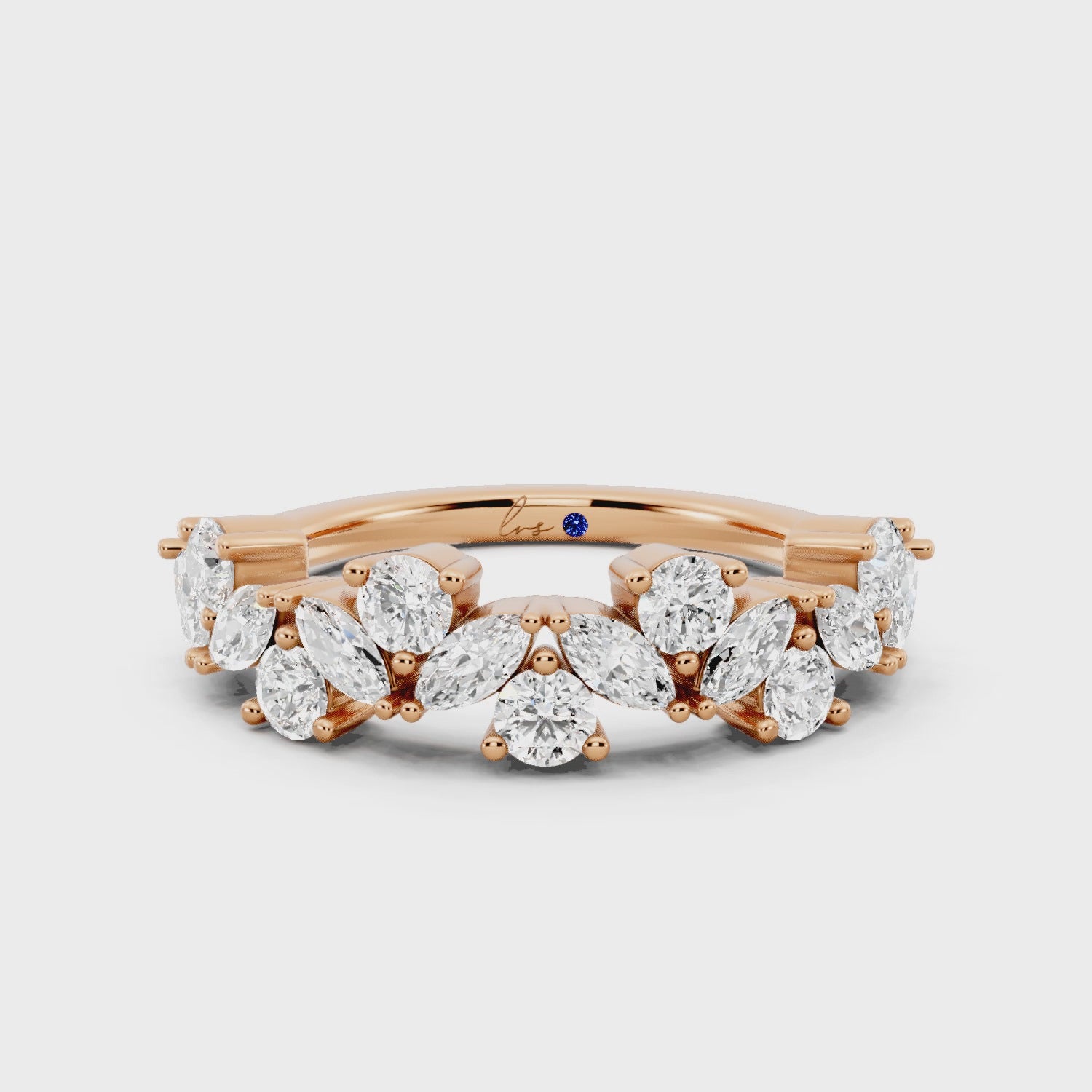 Romantic and refined, the Regalia Diamond Ring holds 1.2 carats of round and marquise diamonds (GH color, VS clarity) in 3.5g of 18k rose gold. A perfect harmony of warmth and sparkle.